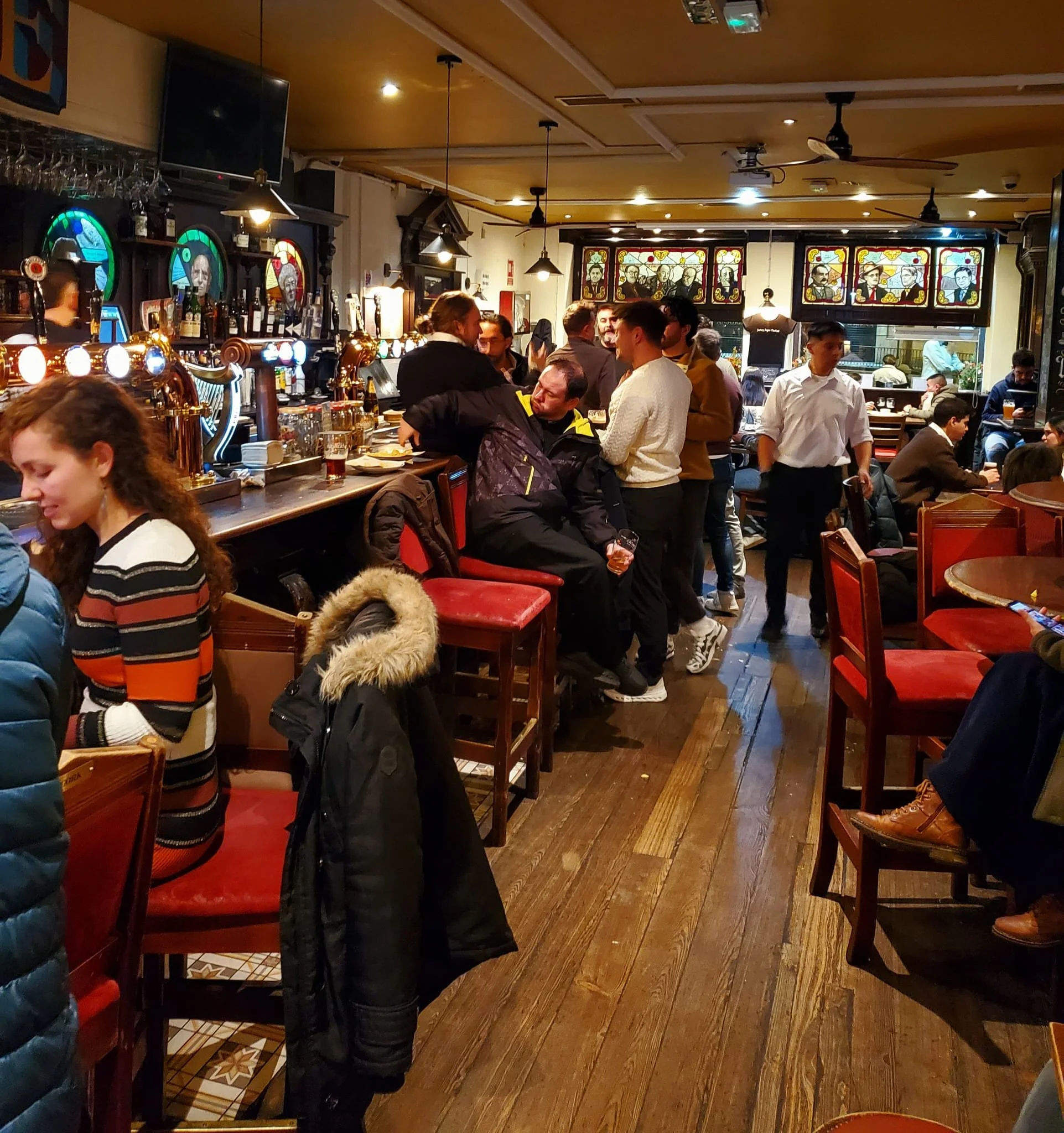 And they seem to have become natural hubs for North American expats because they consistently offer three things: live broadcasts of U.S. and international sports, English-speaking staff and patrons, and familiar comforts like pub food, draft beer variety, and live music. They also host regular language exchange events, which attract international folks living in Madrid.
