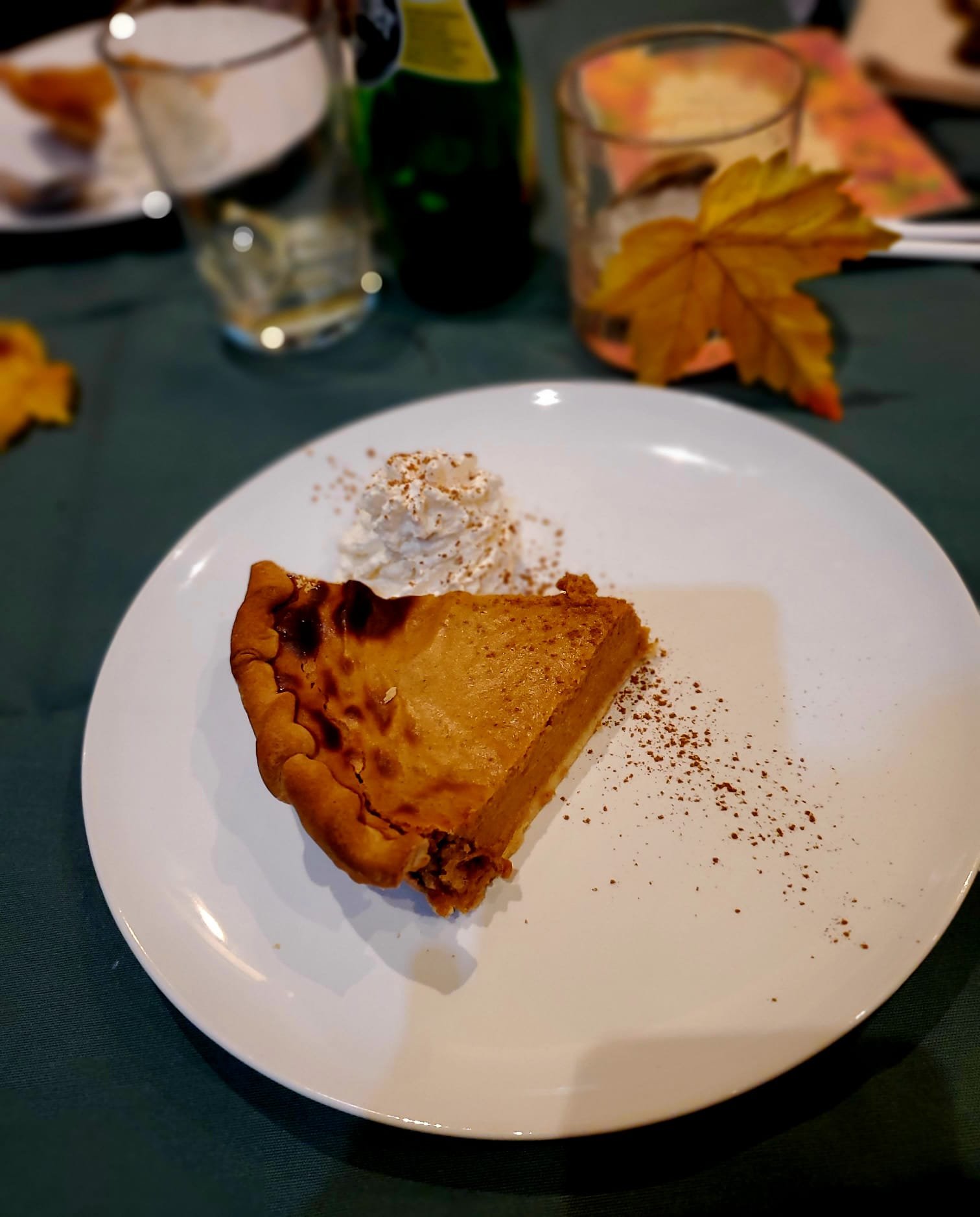 And, finally, dessert. Pumpkin pie with a dollop of whipped cream. Simple, but good.