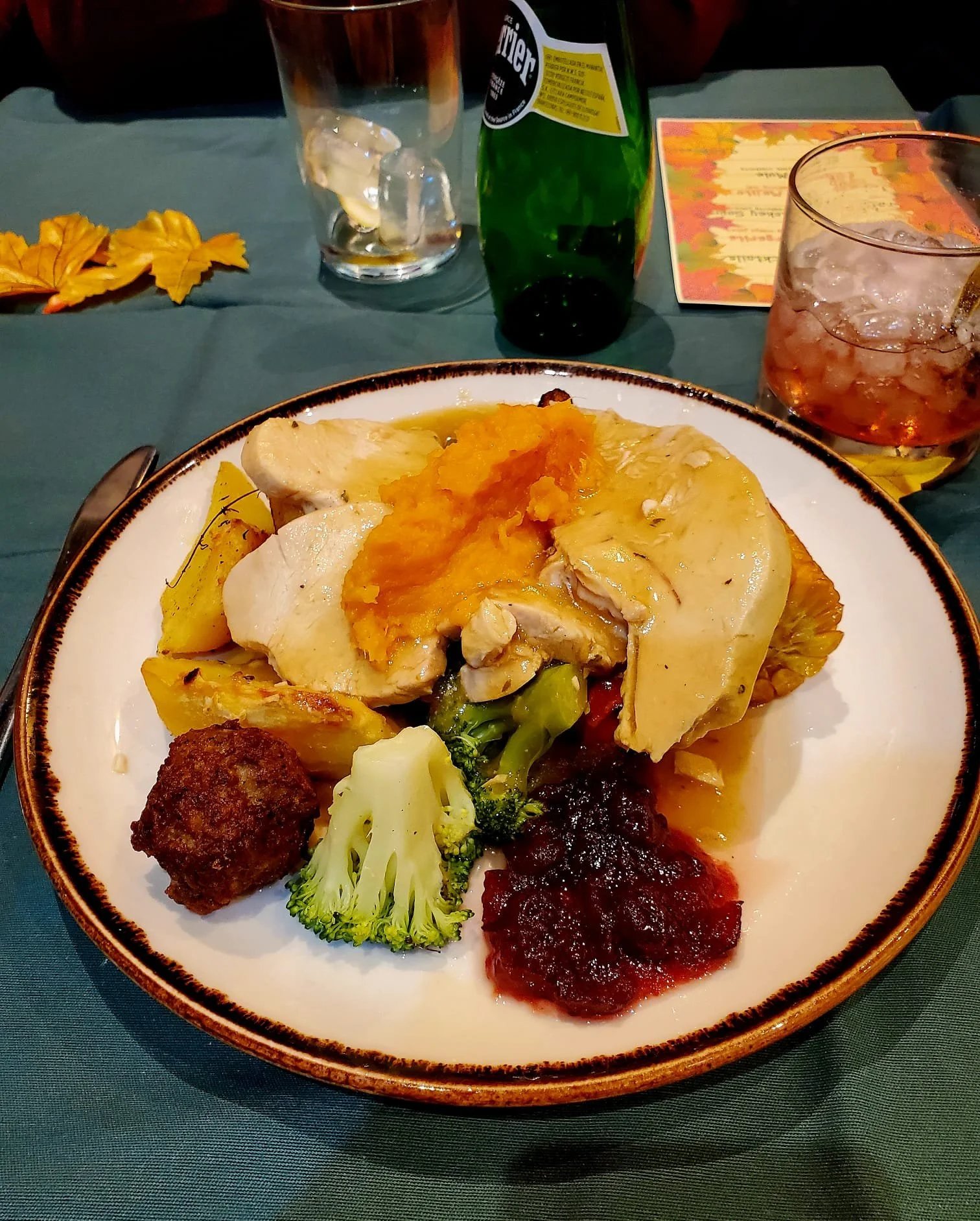 What was not done right: the stuffing (on the menu it says “stuffing”; on the plate is a meatball)