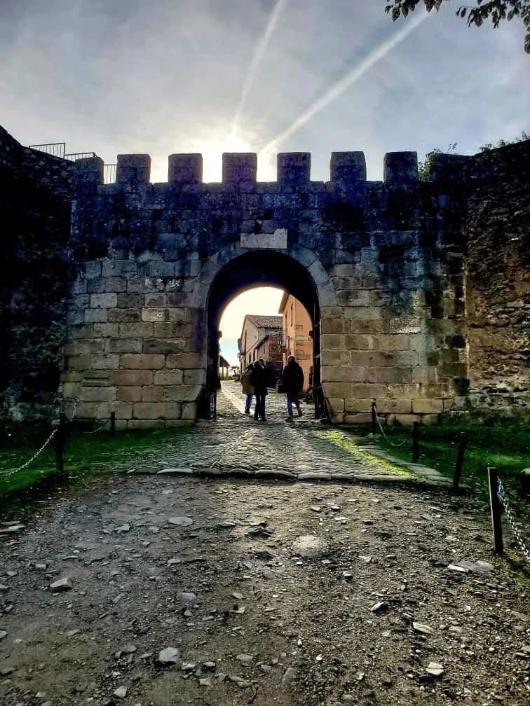We ambled through the town for a short time before finding an entrance to the defensive wall (muralla) and climbed the stairs. As the sun was setting, we strolled along the wall that encircled and overlooked the whole town – old, deserted buildings and walls without roofs – on one side and the river and landscape on the other side.
