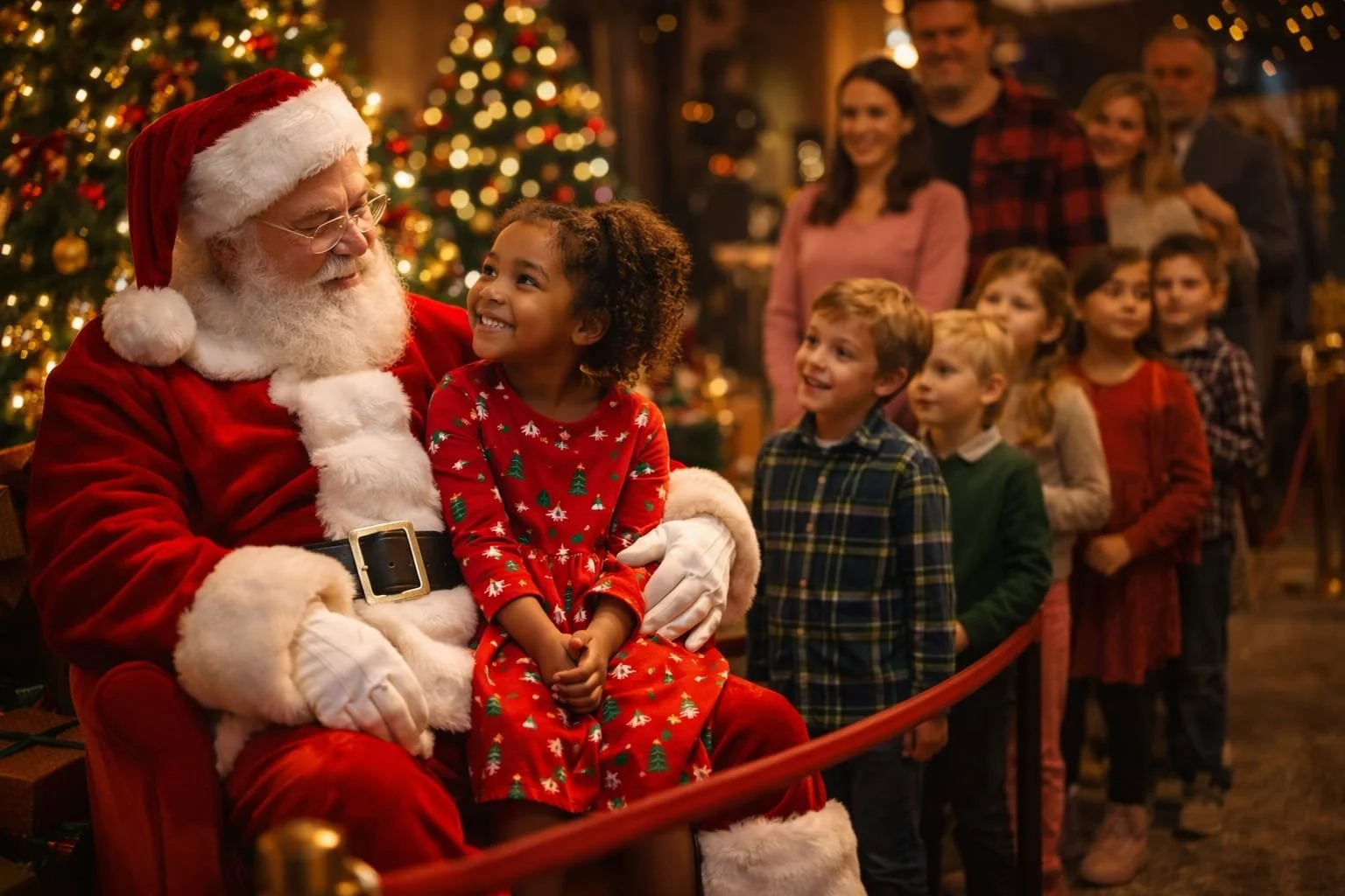 Santa Claus is central: kids visit Santa, sit on his lap to tell him what they want for Christmas, and write him letters.