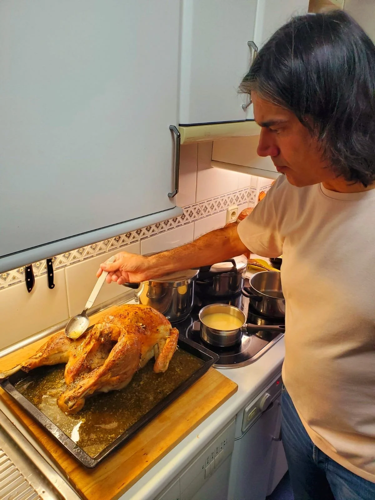 Today I was Master Chef, and the scary part was that this was the first time ever I had A) roasted a turkey, B) made a meal for eight people and C) done all (well, most of) this in Spanish.