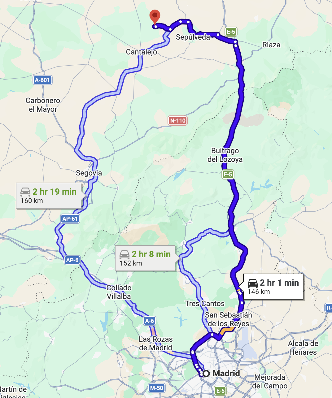 We hit the highway heading north from Madrid, one large backpack and one small wheeled suitcase tucked neatly into the trunk of the car. In the console between us was: one water bottle, one partially eaten package of black licorice, one phone charger, one audiobook (well, it was on my phone) and two cameras (also on our phones).