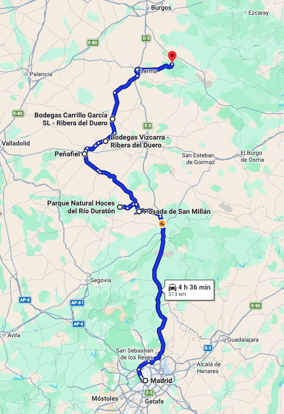 We had been so enamored with the red wine from last night’s dinner that we decided to add a bit of a detour on our way up to Burgos: Bodega Vizcarra in the Ribera del Duero region.